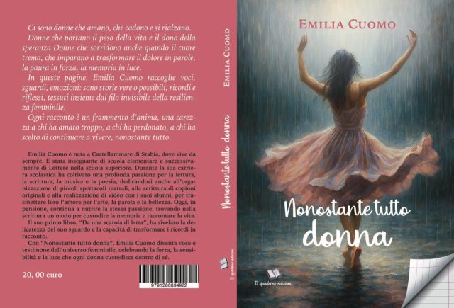 Titolo:Nonostante tutto donna Autrice:Emilia Cuomo Sinossi:Nonostante tutto donna è un libro che raccoglie voci, sguardi ed emozioni intrecciate dal filo invisibile della resilienza femminile. Emilia Cuomo racconta storie vere e possibili, frammenti d’anima che parlano di donne capaci di amare, cadere e rialzarsi, di trasformare il dolore in parole, la paura...